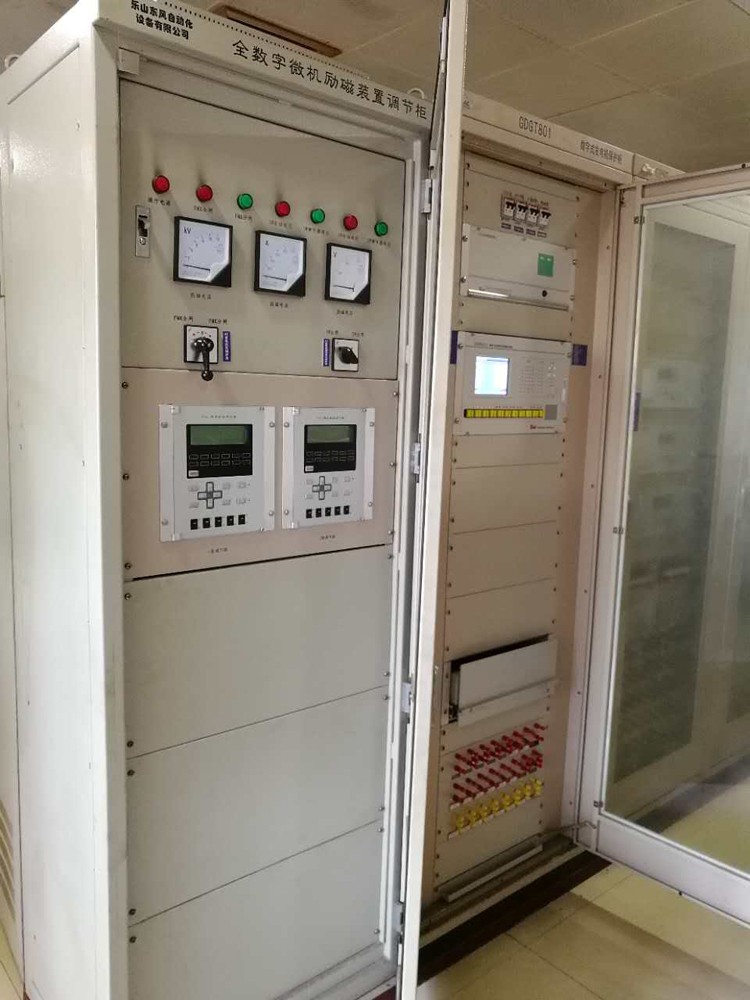 宁坡九峰双微机双通道励磁改造完成并顺利并网发电时间:2017-08-21 公司承接宁坡九峰双微机双通道励磁改造项目,于2017年8月6日改造完成并顺利并网发电。该项目发电机型号为:QF2-15-2Z;机组容量:15000KW;励磁型号为:WKL1-300/200,静止可控硅双微机双通道励磁。